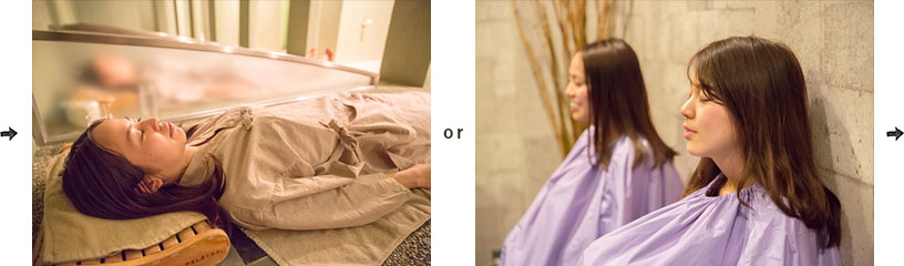 優しく、ゆったりとしたリラックスのできる音楽が流れる岩盤浴と豊かな香りがいっぱいに広がるよもぎ蒸しで、心地良い汗をかいてゆっくり芯から温まって下さい。カラダとココロをやさしくときほぐす……。そんなゆったりとしたひとときをお過ごしください。