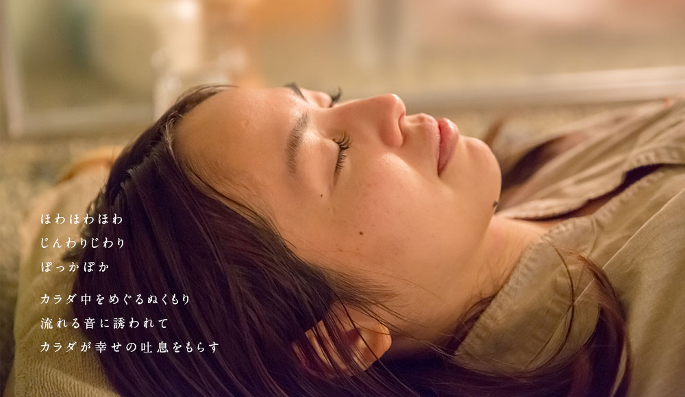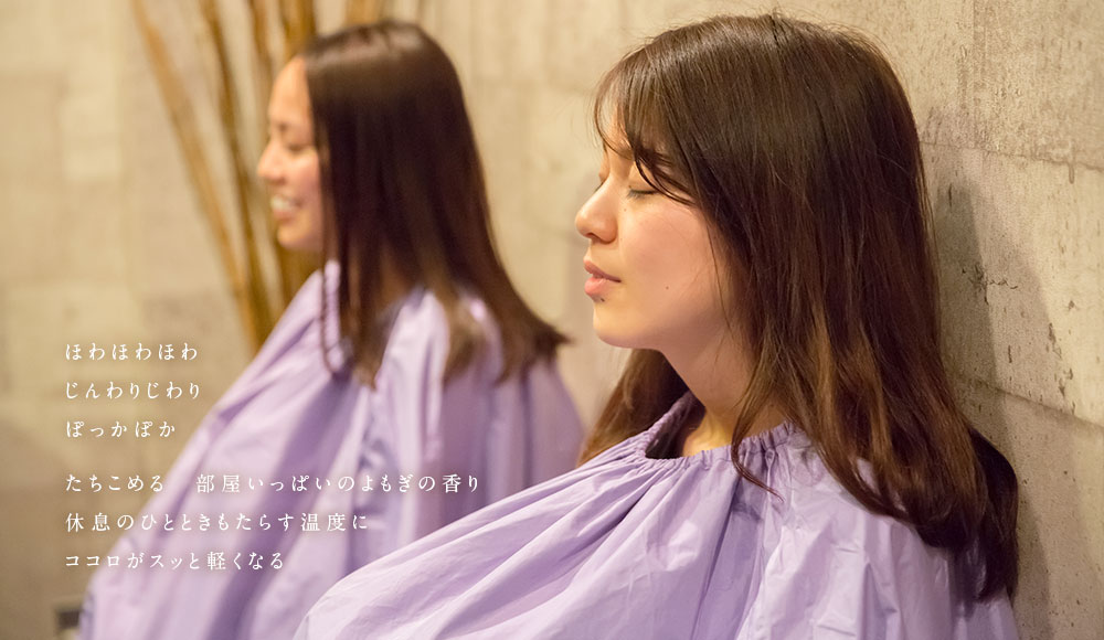 部屋いっぱいのよもぎの香りに包まれてじんわりゆっくりカラダが温まっていく。女性のカラダの内側から輝く元気を取り戻します。