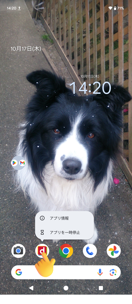 ①待ち受け画面上にあるアプリを長押しタッチし、上記の写真のような吹きだしアイコンが出るようにしてください。