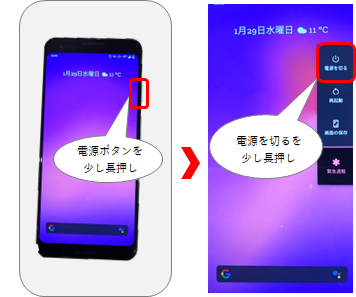 - スマートフォンの電源ボタンを長押しします。